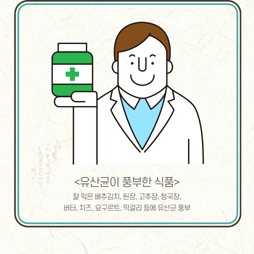 - 면역력을 높이고 장에 비타민을 좀 만들어 주세요.